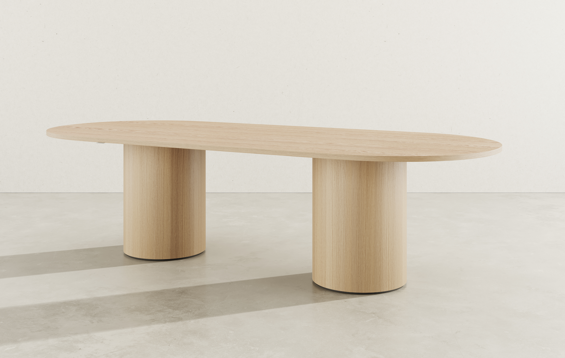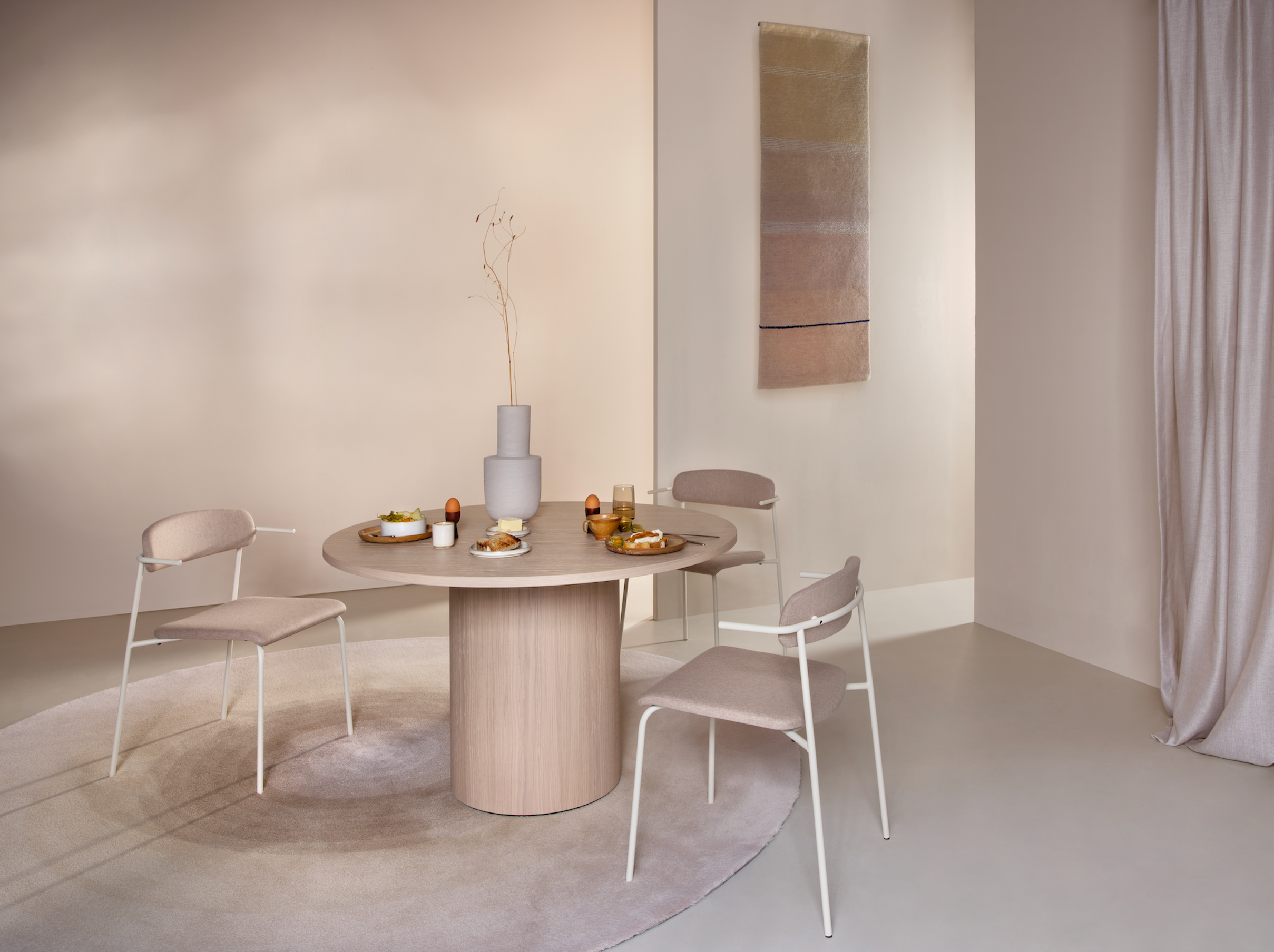 The Kami Round table is available in various widths and lengths, making it extremely suitable for both formal and informal interiors. Depending on the desired size, the table comes in one or more top parts and one or more table legs.